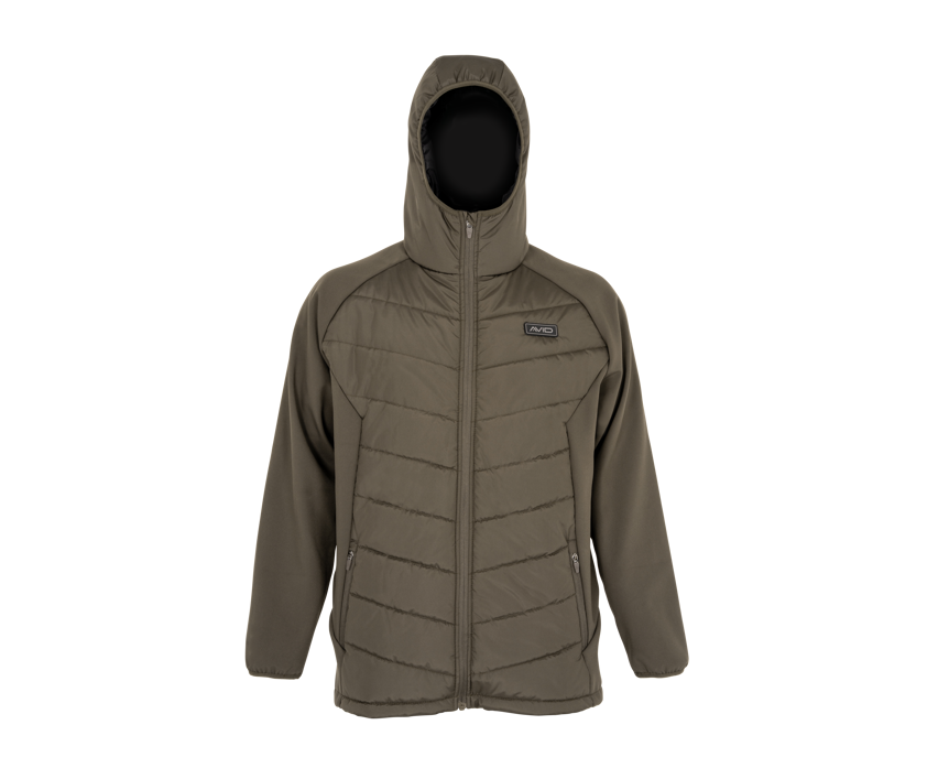 - Avid Carp Bunda Thermite Hybrid Jacket kombinuje teplo díky prošívané části typu puffa na těle s flexibilitou a prodyšností softshellu na rukávech a bocích– nabízí dokonalou rovnováhu mezi izolací a pohybem pro celoroční nošení.