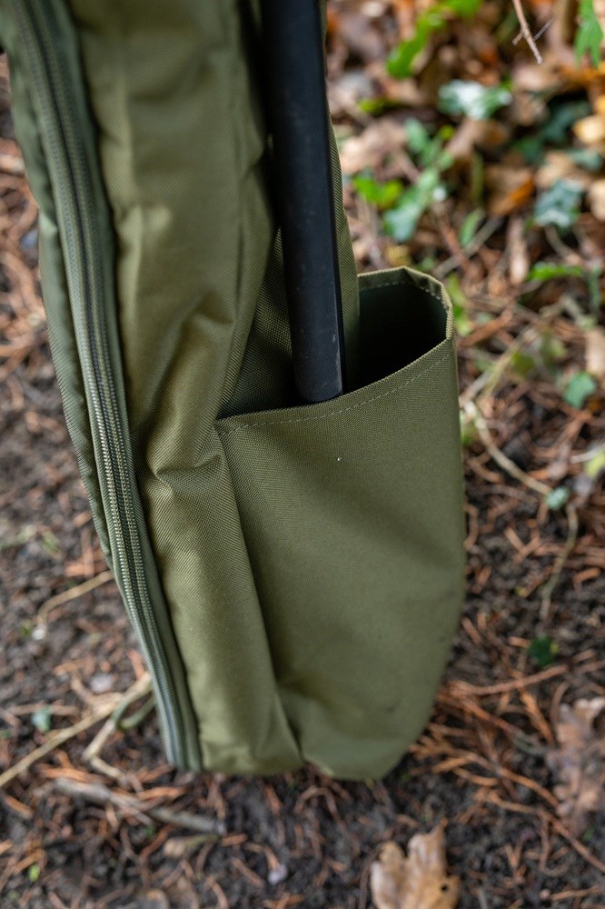 Má velkoryse polstrovaný prostor navržený pro pohodlné uložení navázaných prutů a navijáků a větší zadní přihrádku, do které se vejdou všechny přístřešky a deštníky Korum.