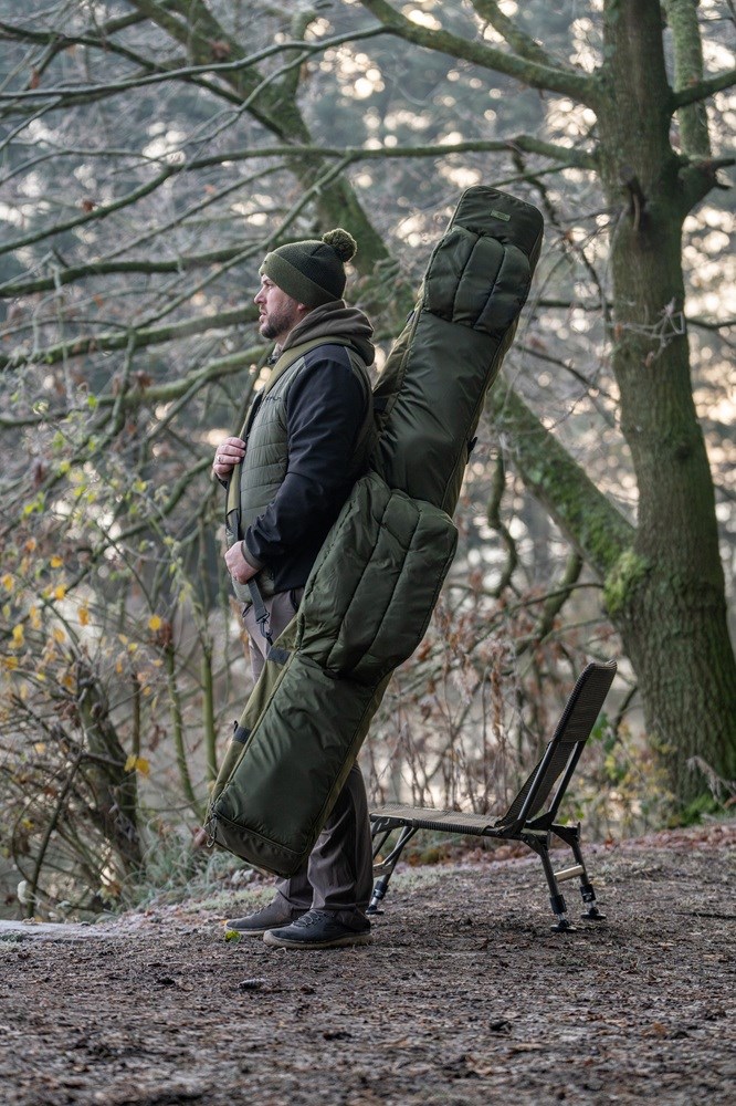 Má velkoryse polstrovaný prostor navržený pro pohodlné uložení navázaných prutů a navijáků a větší zadní přihrádku, do které se vejdou všechny přístřešky a deštníky Korum.