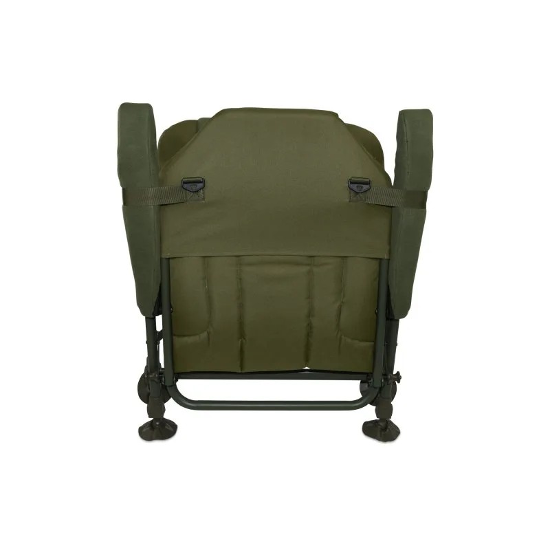 Křeslo nabízí pevné polstrování, zakřivenou přední hranu pro lepší podporu nohou a patentovaný systém nastavení nohou, který zaručuje stabilitu na jakémkoli povrchu. Díky hmotnosti pouhých 5,3 kg jde o mimořádně lehký model, který přesto poskytuje luxusní oporu i náročným kaprařům.