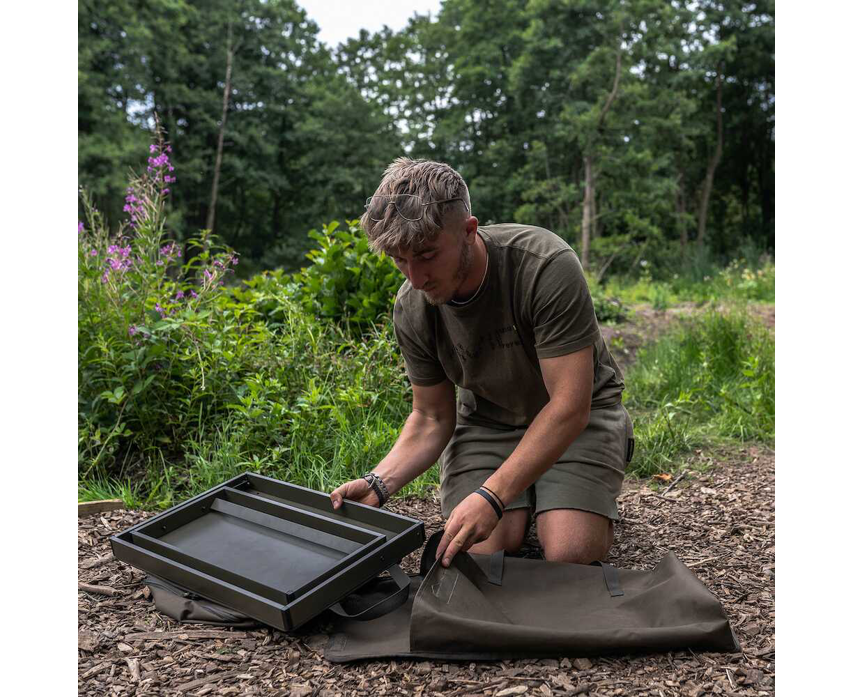 Organizér má plně nastavitelné LokDown nohy, což jej umožňuje postavit do ideální roviny i na svažitém břehu.