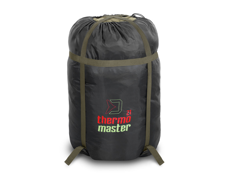 Přichycení spacáku na postel je zajištěno pomocí návleků na obou koncích a fixačního popruhu s pevným a mohutným klipem, díky kterým zůstane ThermoMASTER jako přikovaný ke lehátku za každých okolností.