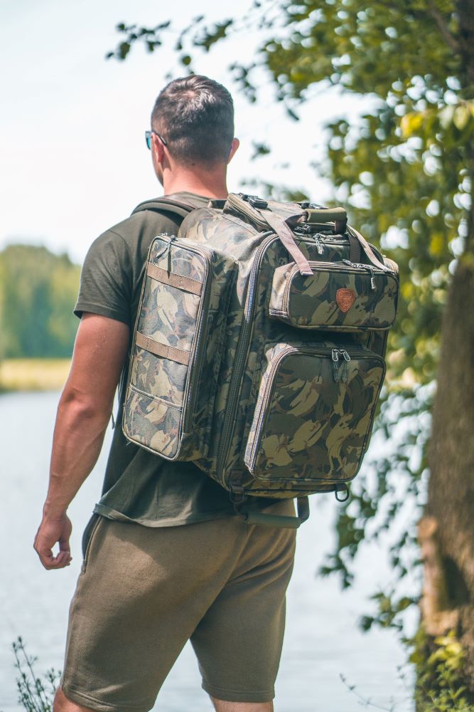 Prostorný batoh určený pro kapraře, který je osazen spoustou bočních kapes a různých poutek k uchycení vidliček