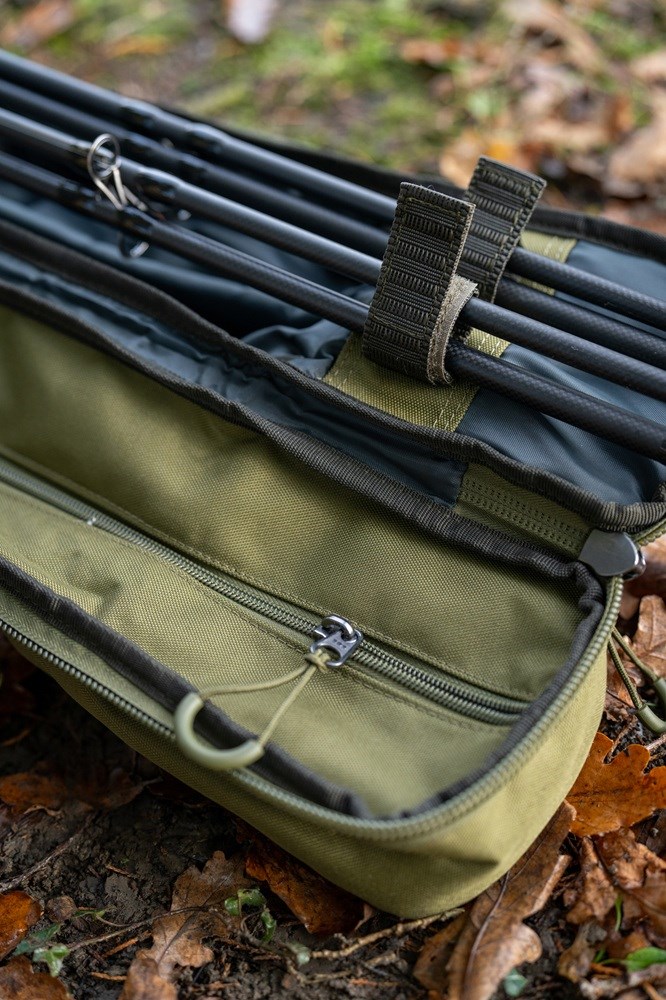 Má velkoryse polstrovaný prostor navržený pro pohodlné uložení navázaných prutů a navijáků a větší zadní přihrádku, do které se vejdou všechny přístřešky a deštníky Korum.