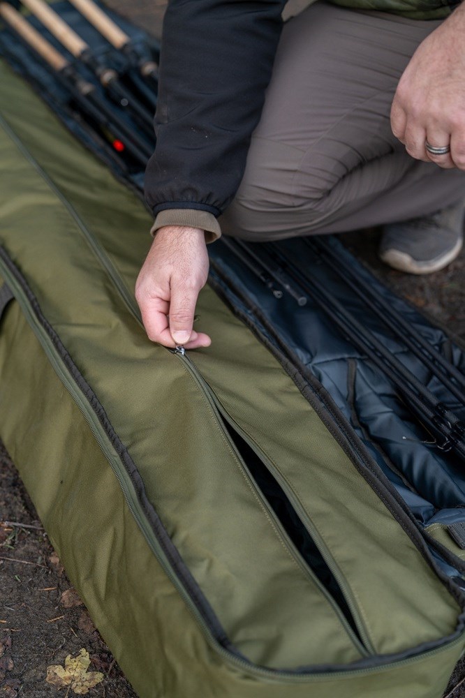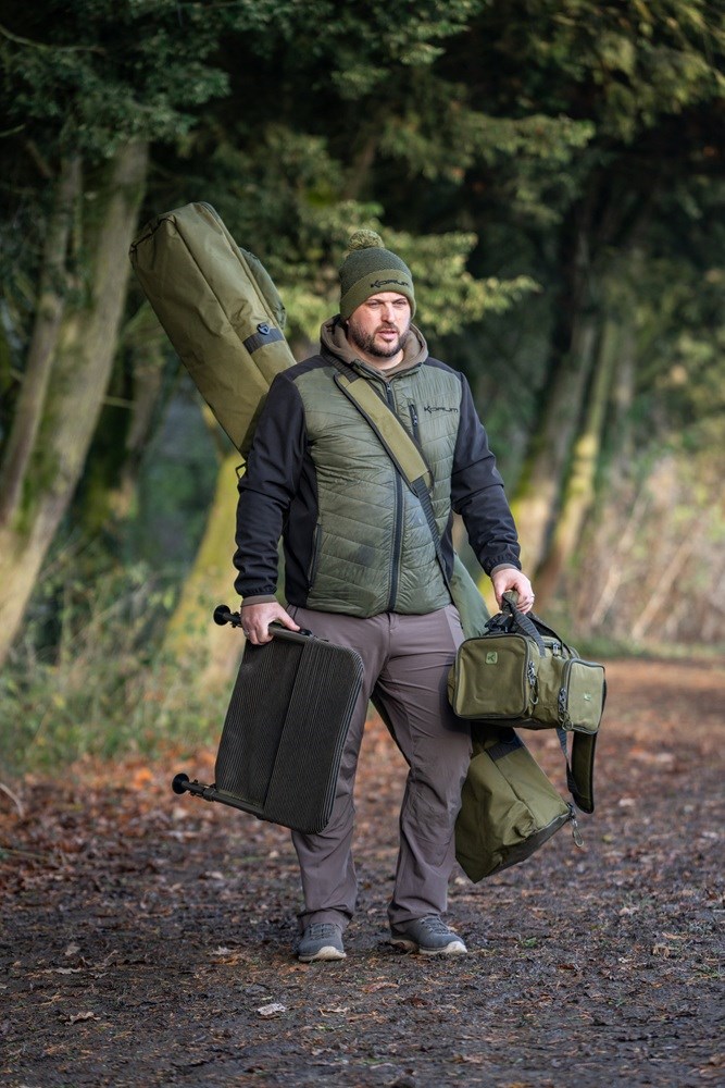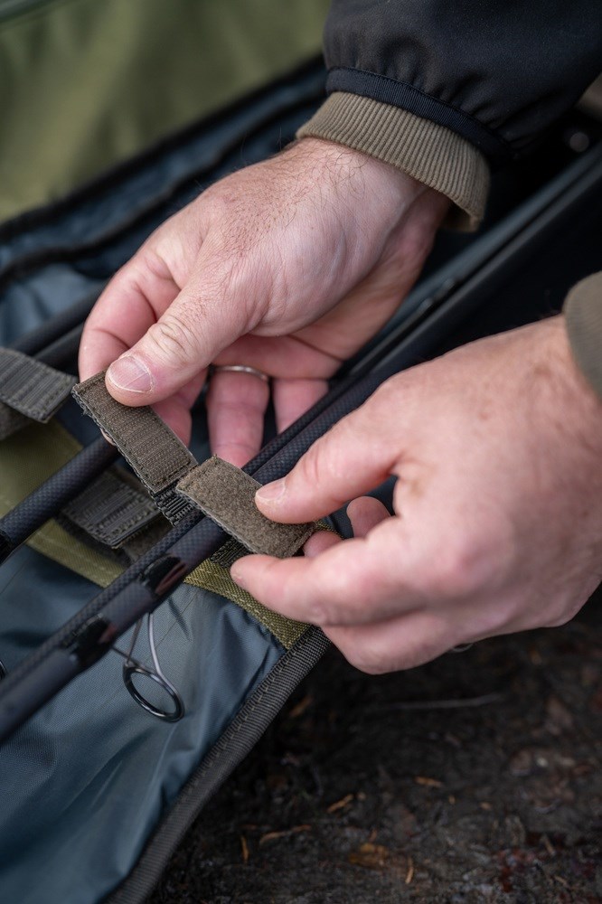 Má velkoryse polstrovaný prostor navržený pro pohodlné uložení navázaných prutů a navijáků a větší zadní přihrádku, do které se vejdou všechny přístřešky a deštníky Korum.