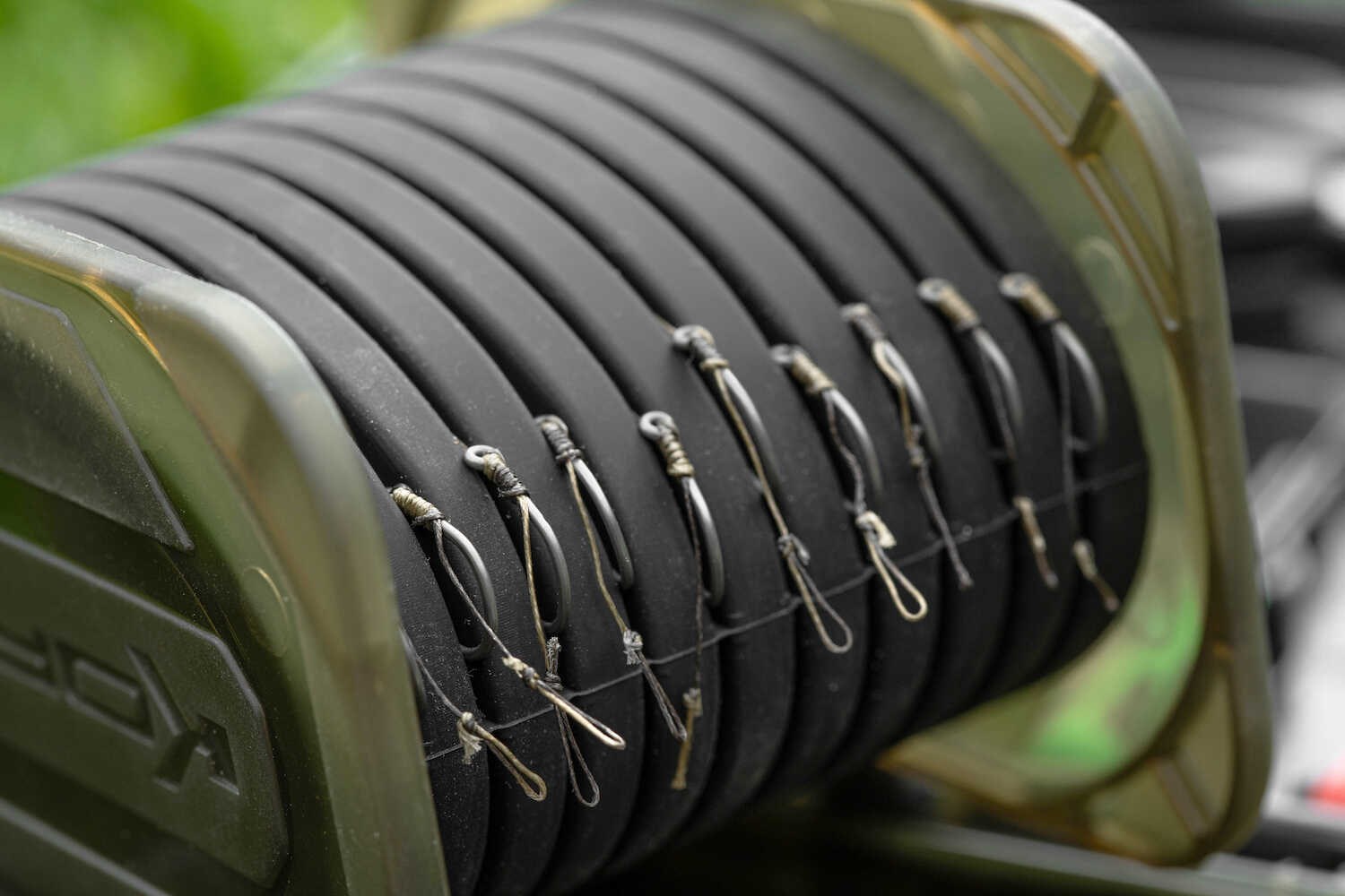 Jednoduše naviňte návazec a zabořte háček do měkkého silikonu, abyste jej udrželi na místě.