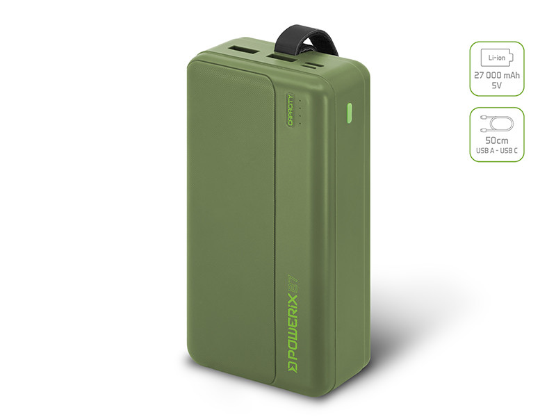 Konstrukce powerbanky je navržena s ohledem na praktické využití v terénu a vysokou odolnost. Robustní tělo doplňuje integrované poutko, které umožňuje bezpečné zavěšení zařízení například na háček v bivaku. S modelem POWERIX získáváte jistotu, že vaše výbava bude mít dostatek energie po celou dobu lovu.