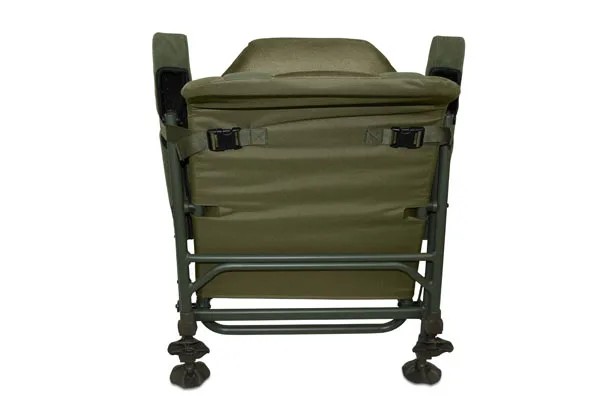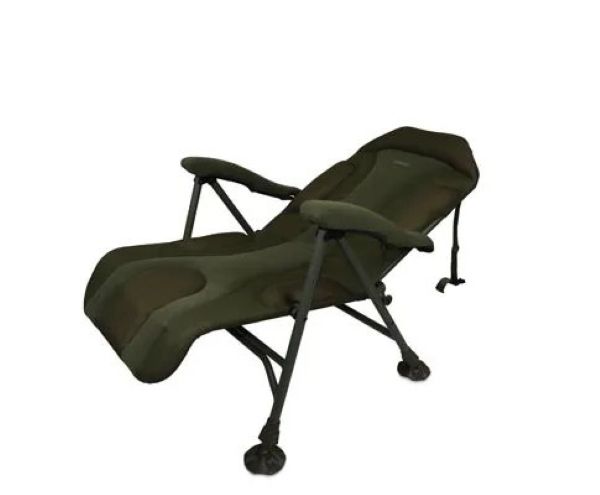 Křeslo nabízí pevné polstrování, zakřivenou přední hranu pro lepší podporu nohou a patentovaný systém nastavení nohou, který zaručuje stabilitu na jakémkoli povrchu. Díky hmotnosti pouhých 5,3 kg jde o mimořádně lehký model, který přesto poskytuje luxusní oporu i náročným kaprařům.